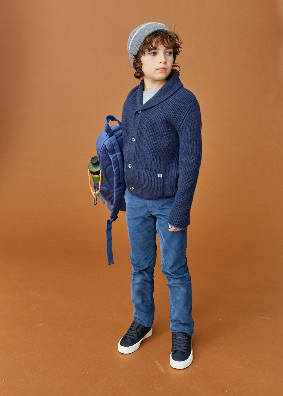 Discover our cozy Corduroy Trousers for boys - the epitome of smart style. Made from a blend of refined cotton corduroy and elastane, they ensure a polished fit that's both comfortable and refined. Pair them with contrasting sweaters, shirts, or polos for a diverse look, or create a coordinated ensemble with our matching Corduroy Shirt. Equipped with an adjustable waist, they flawlessly adapt to your little adventurer's morphology, ensuring comfort throughout the day. The straight-cut shape exudes timeless charm, while thoughtful details like belt loops and slide pockets enhance functionality. These trousers offer a versatile canvas for crafting various outfits, allowing young gentlemen to effortlessly navigate any occasion with a touch of sophistication and comfort.
