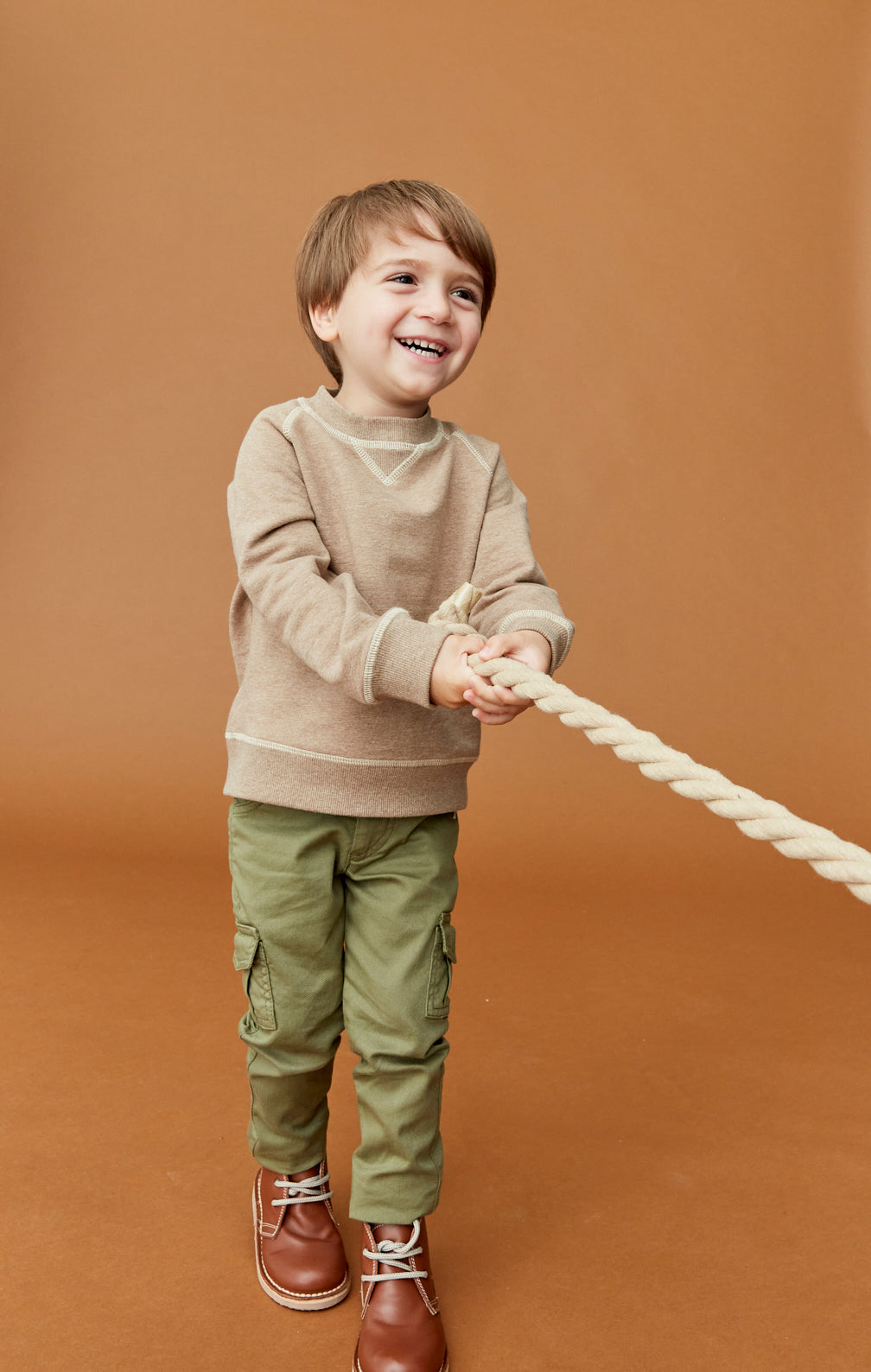 Environmentally friendly thanks to its organic cotton fleece, its softness will keep your child warm and exceptionally comfortable. The standout double stitching, in a contrasting hue, adds a touch of character. Ribbing on the arms and hem and dropped shoulder ensures an impeccable fit. Whether exploring landscapes or seeking daily modernity, it's tailored for boys who crave both comfort and style. Versatile enough for outdoor escapades or cozy days at home, it effortlessly combines trendiness with ease.