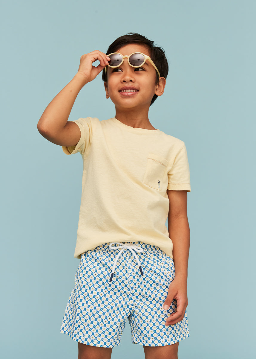 Our Boys' Swimming Trunks are made from high-quality microfibre cloth, offering lightweight comfort and quick-drying properties by repelling water absorption. Designed with exceptional softness and stylish printed patterns, these swim shorts combine elegance with practicality. Featuring several pockets, an elastic waistband for a secure fit, and a soft mesh lining for all-around comfort, they ensure a great fit for active boys. Plus, for a coordinated family look, our boys' swim shorts are also available in a Men's version, making it easy for father and son to match for a fun swim moment. Ideal for the beach, pool, or family outings!