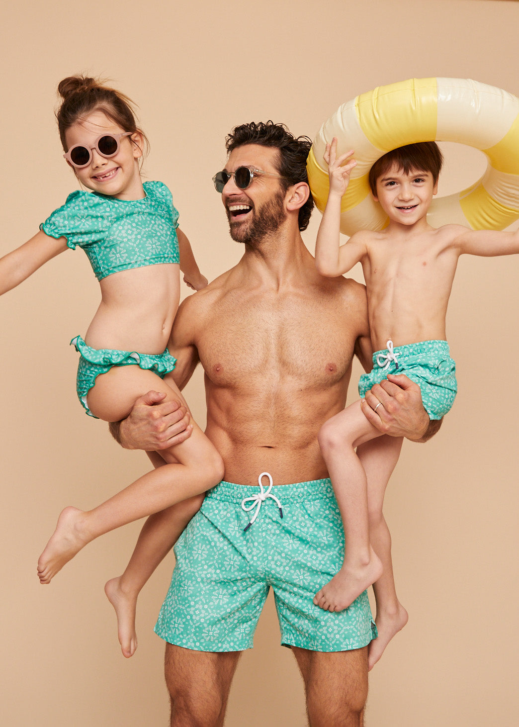 Our Boys' Swimming Trunks are made from high-quality microfibre cloth, offering lightweight comfort and quick-drying properties by repelling water absorption. Designed with exceptional softness and stylish printed patterns, these swim shorts combine elegance with practicality. Featuring several pockets, an elastic waistband for a secure fit, and a soft mesh lining for all-around comfort, they ensure a great fit for active boys. Plus, for a coordinated family look, our boys' swim shorts are also available in a Men's version, making it easy for father and son to match for a fun swim moment. The same print is also available for girls, perfect for sibling matching swims. Ideal for the beach, pool, or family outings!