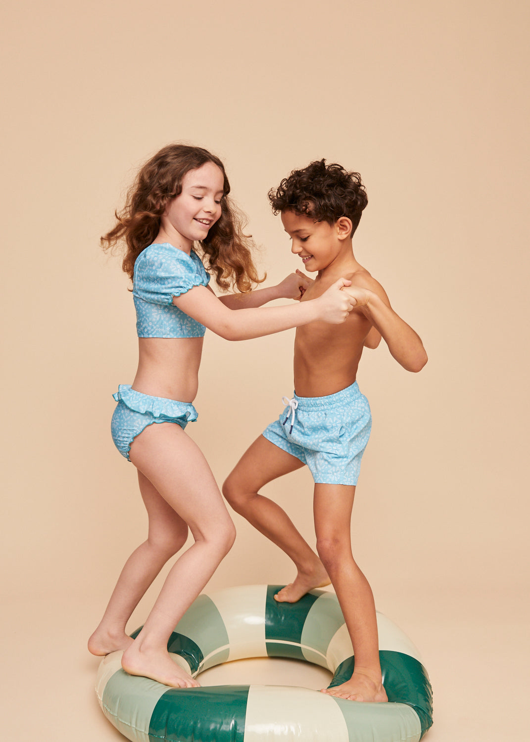 Our Boys' Swimming Trunks are made from high-quality microfibre cloth, offering lightweight comfort and quick-drying properties by repelling water absorption. Designed with exceptional softness and stylish printed patterns, these swim shorts combine elegance with practicality. Featuring several pockets, an elastic waistband for a secure fit, and a soft mesh lining for all-around comfort, they ensure a great fit for active boys. Plus, for a coordinated family look, our boys' swim shorts are also available in a Men's version, making it easy for father and son to match for a fun swim moment. The same print is also available for girls, perfect for sibling matching swims. Ideal for the beach, pool, or family outings!